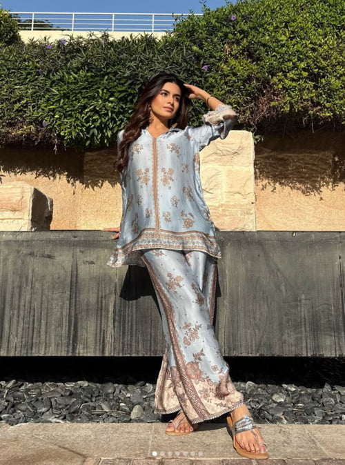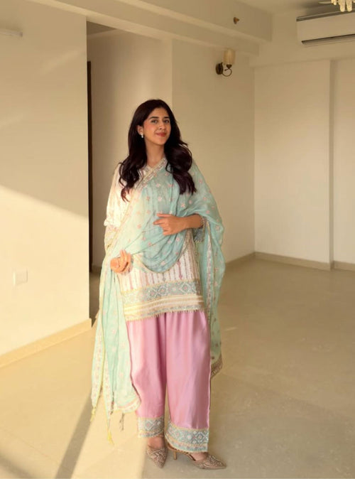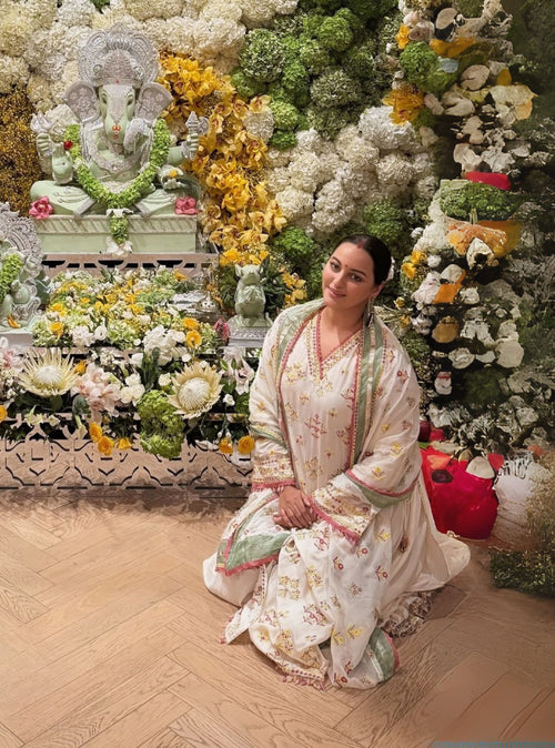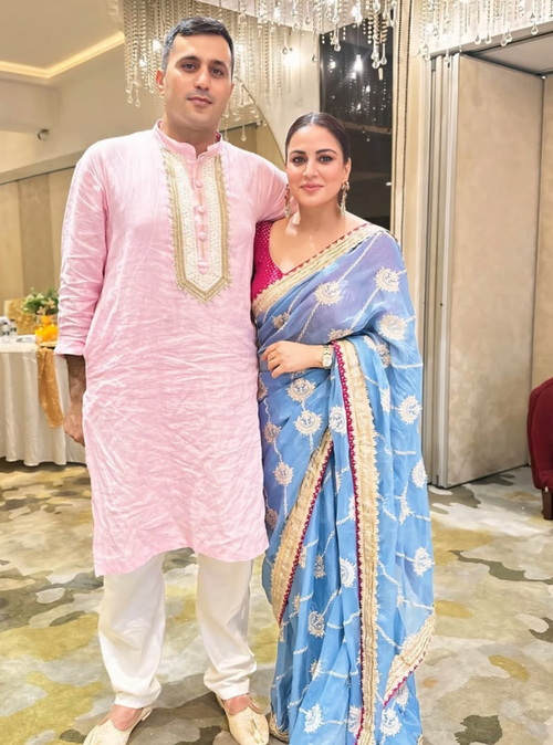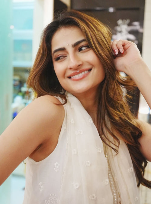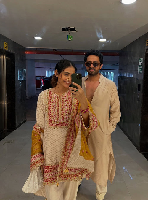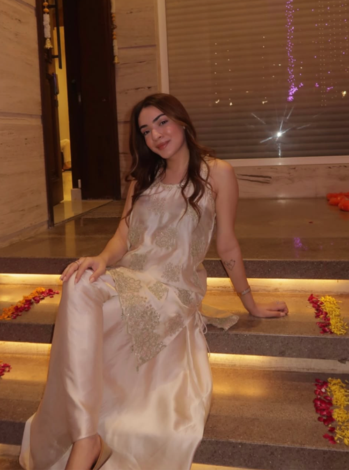 The colour feels so understated yet festive. The embroidery adds such a soft, elegant charm to the whole look. Loved how graceful and light this outfit feels. It’s perfect for intimate celebrations and special days