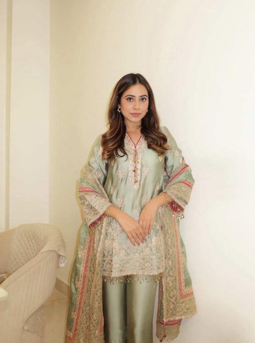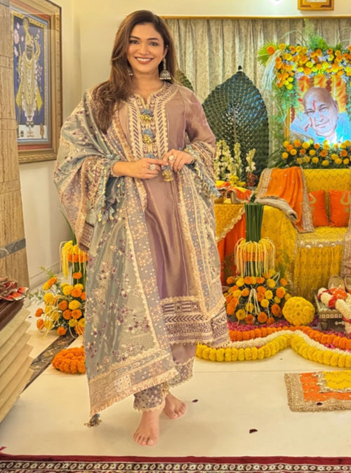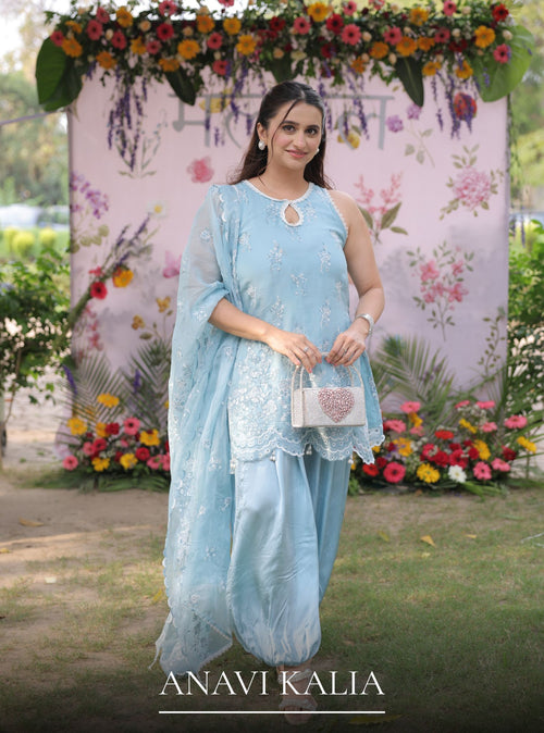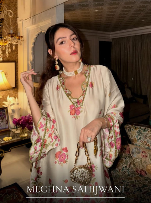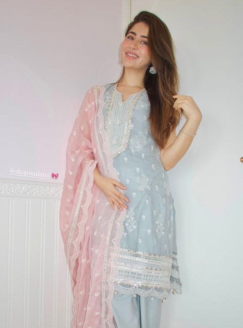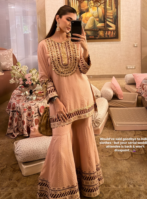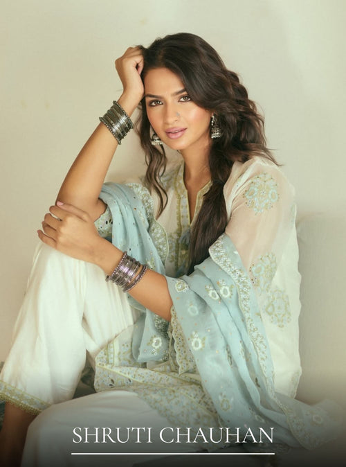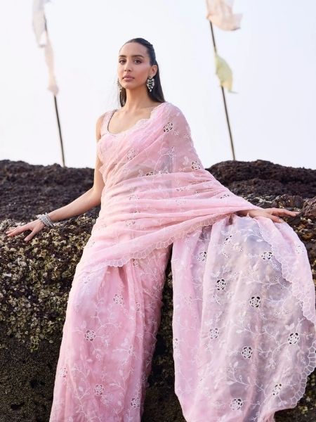 The colour feels so understated yet festive. The embroidery adds such a soft, elegant charm to the whole look. Loved how graceful and light this outfit feels. It’s perfect for intimate celebrations and special days