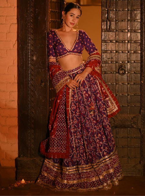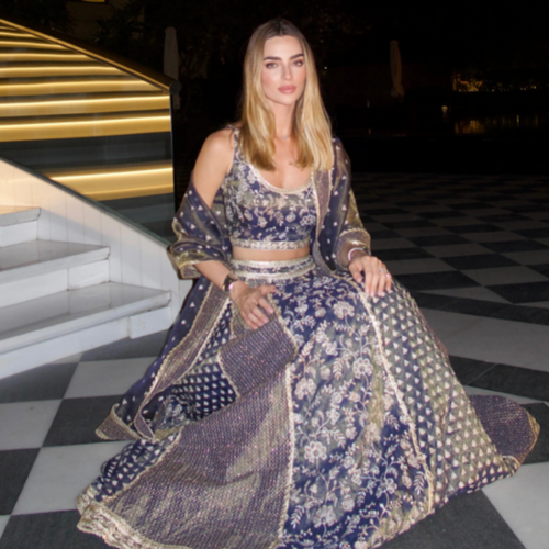 Chose this deep indigo lehenga for a destination sangeet and it turned heads all night. Can’t get over how rich and detailed the embroidery is!