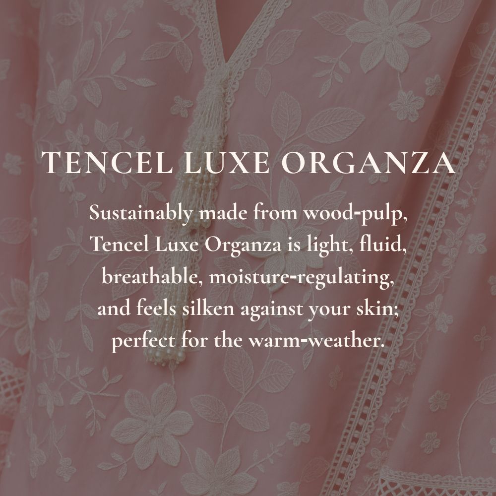 The fabric quality is excellent. It feels gentle on the skin and looks lovely when worn. Truly comfortable and elegant