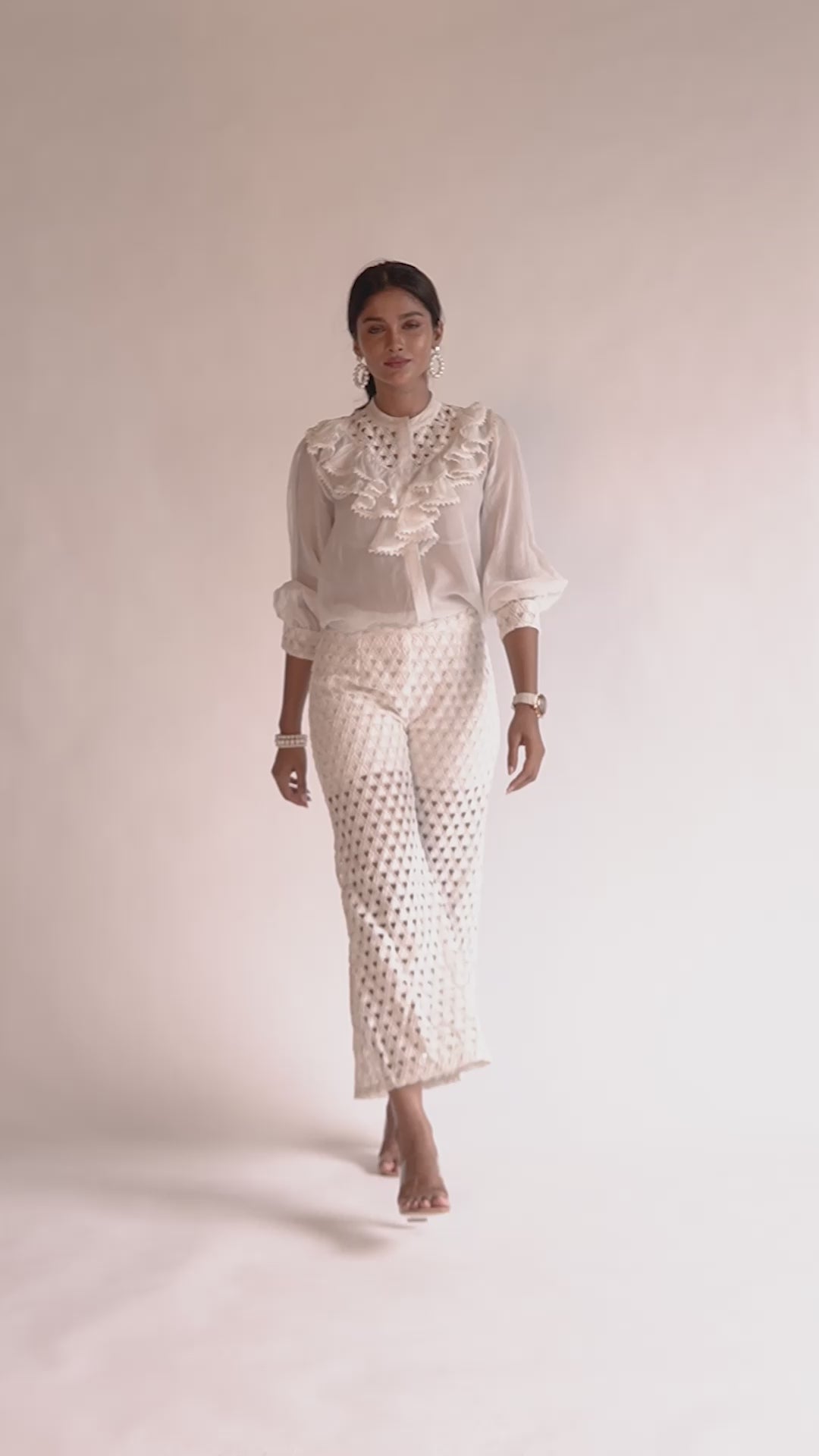 Mulmul Organza THEA White SHIRT With GUIPURE THEA White PANT