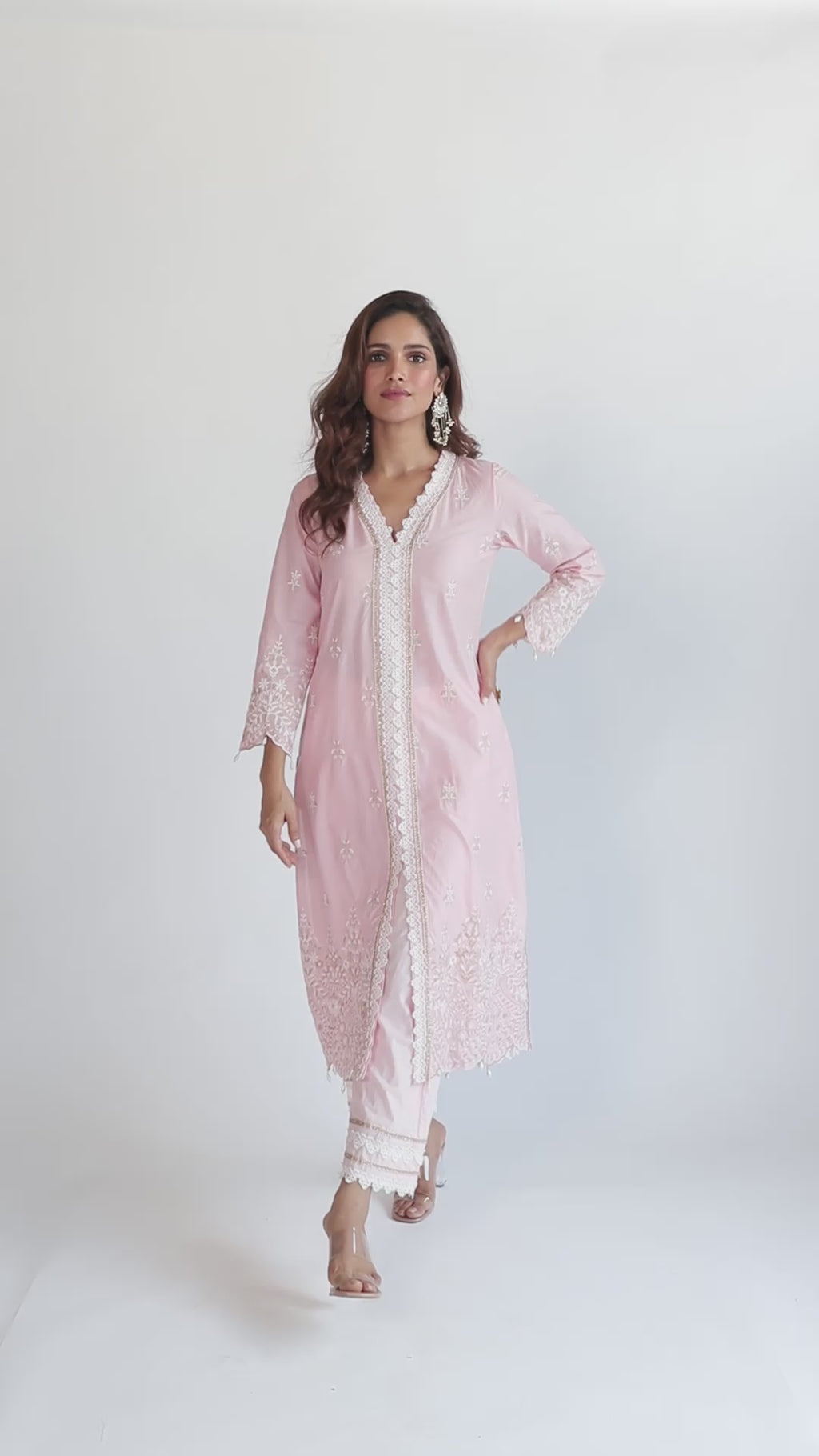 Mulmul Cotton Swan Pink Kurta With Swan Pink Pant