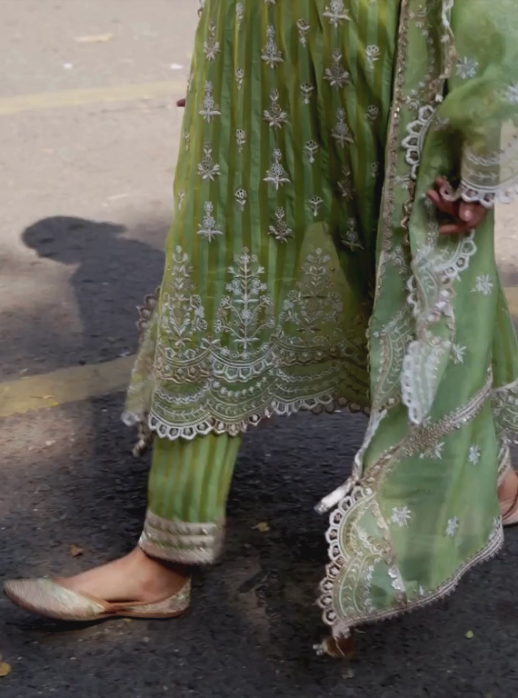 Mulmul Banarsi Dasheri Green Kurta With Mulmul Banarsi Dasheri Green Pant
