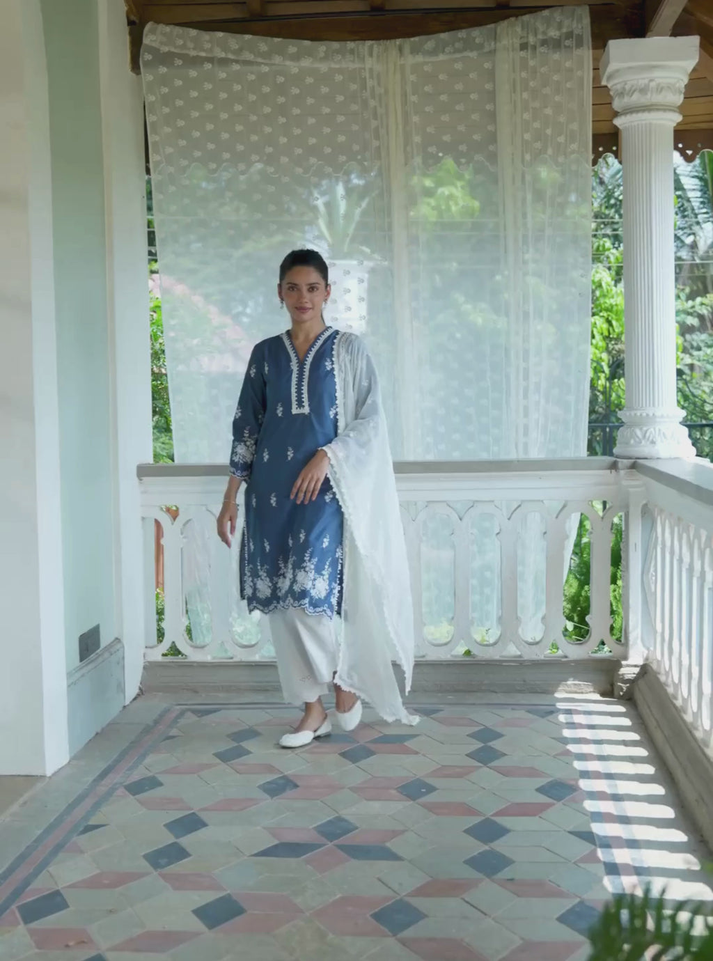 Abhiri Supima Cotton Steel Blue Kurta Set