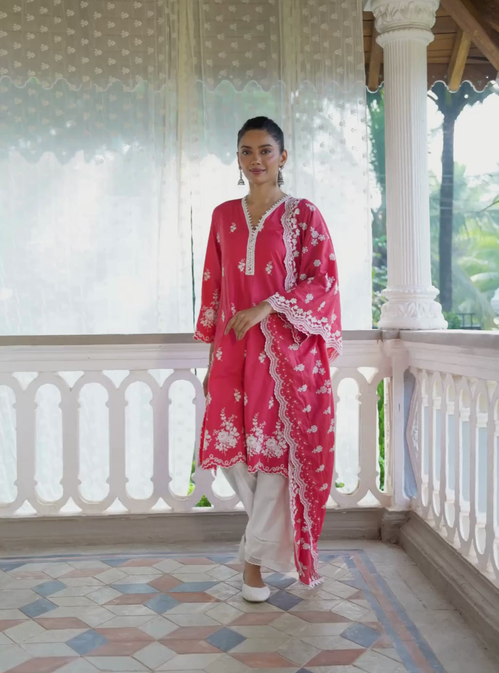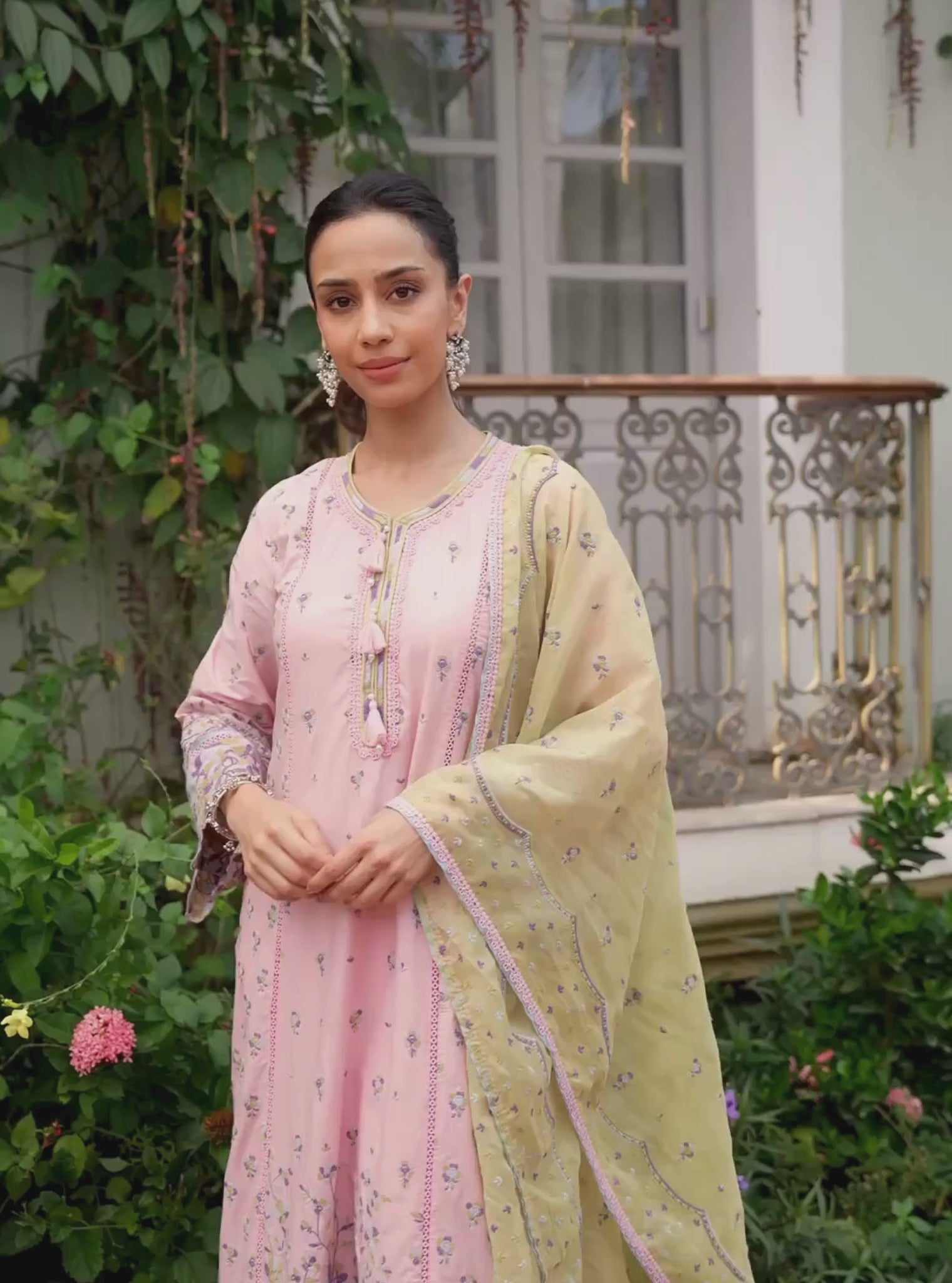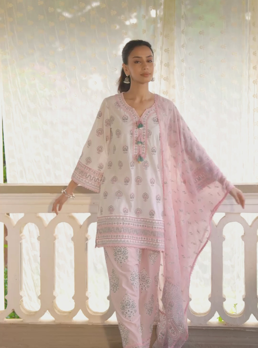 Mysaara Supima Cotton Pink Anarkali Kurta Set