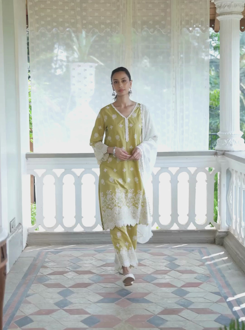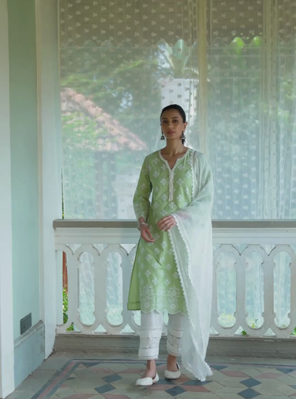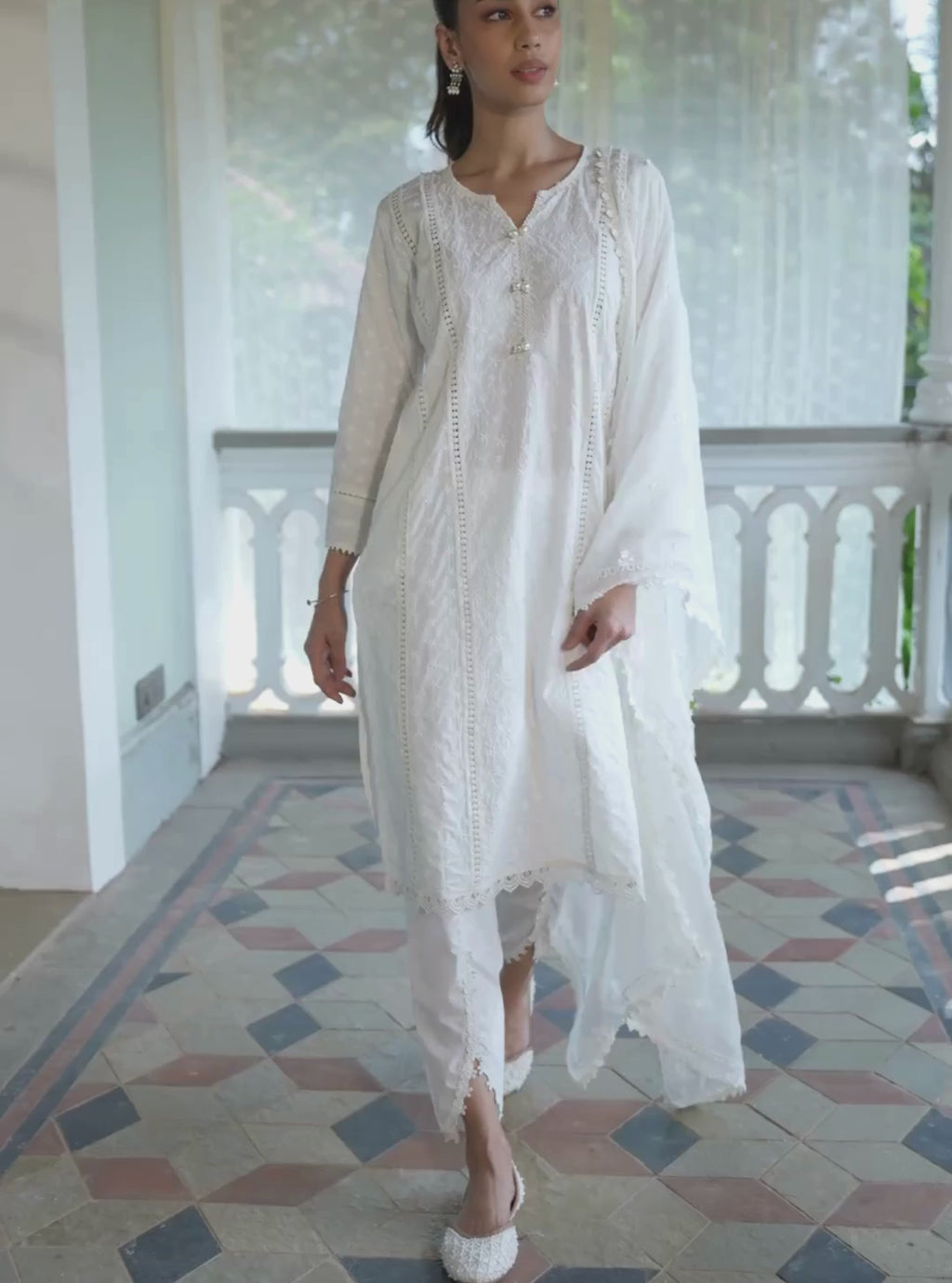 Mysaara Supima Cotton Off-White Anarkali Kurta Set