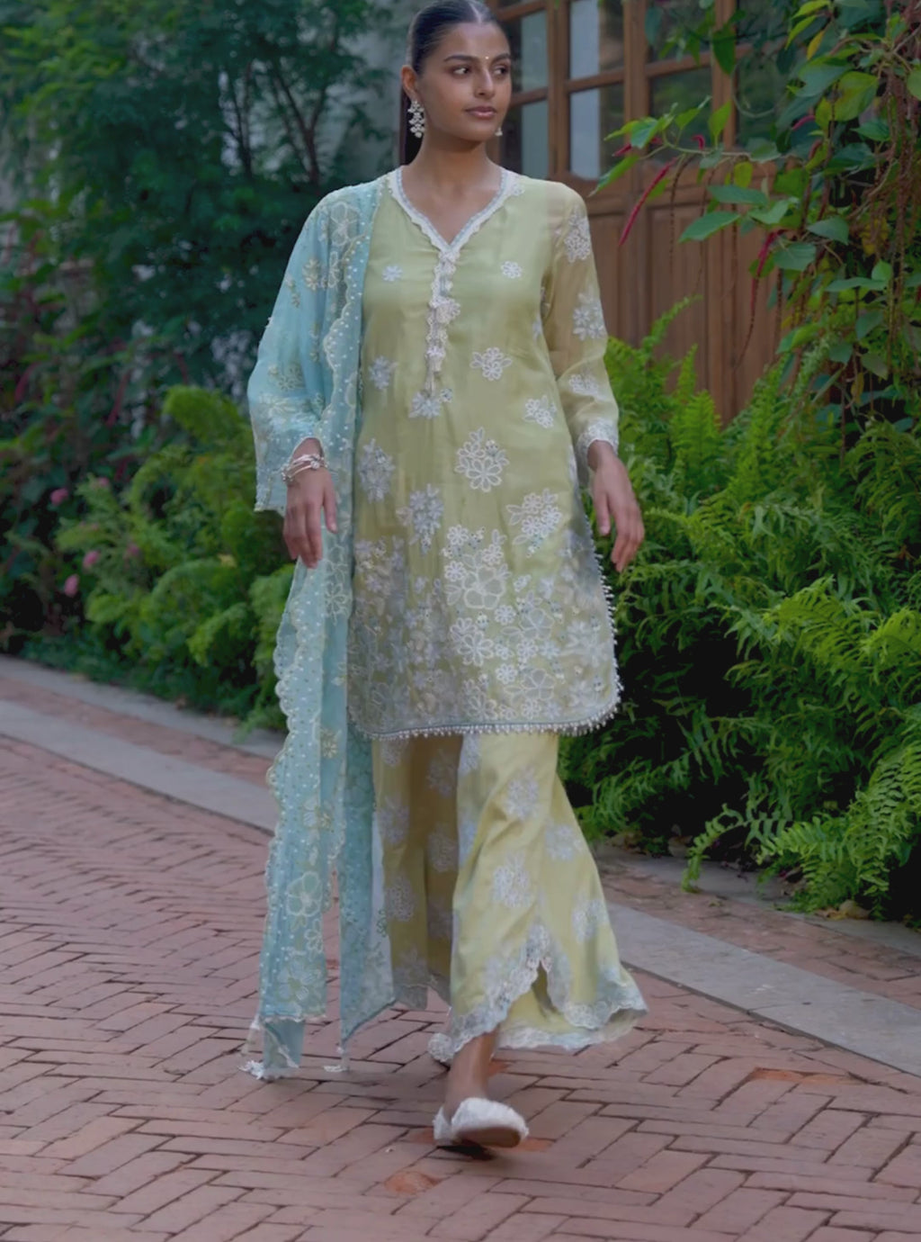 Lalo Organza Lime Kurta Set