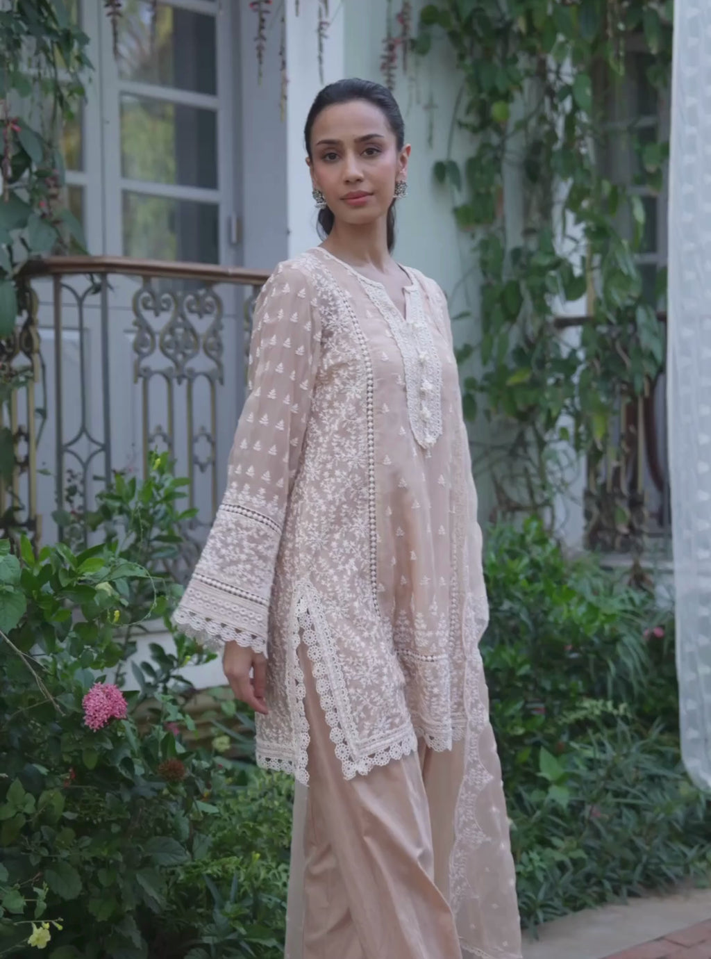 Meyo Organza Beige Kurta Set
