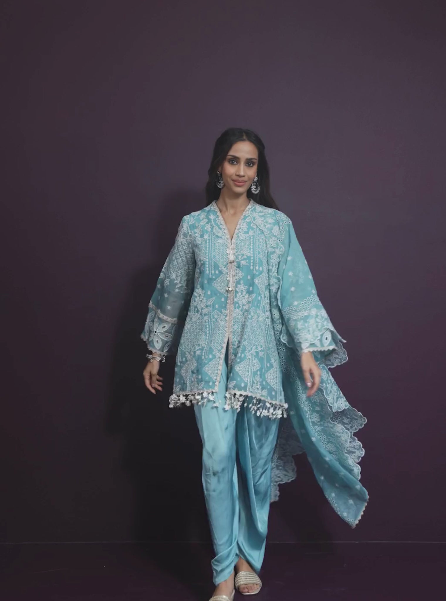 Renu Pima Satin Sky Blue Kurta with Purple Pant Set
