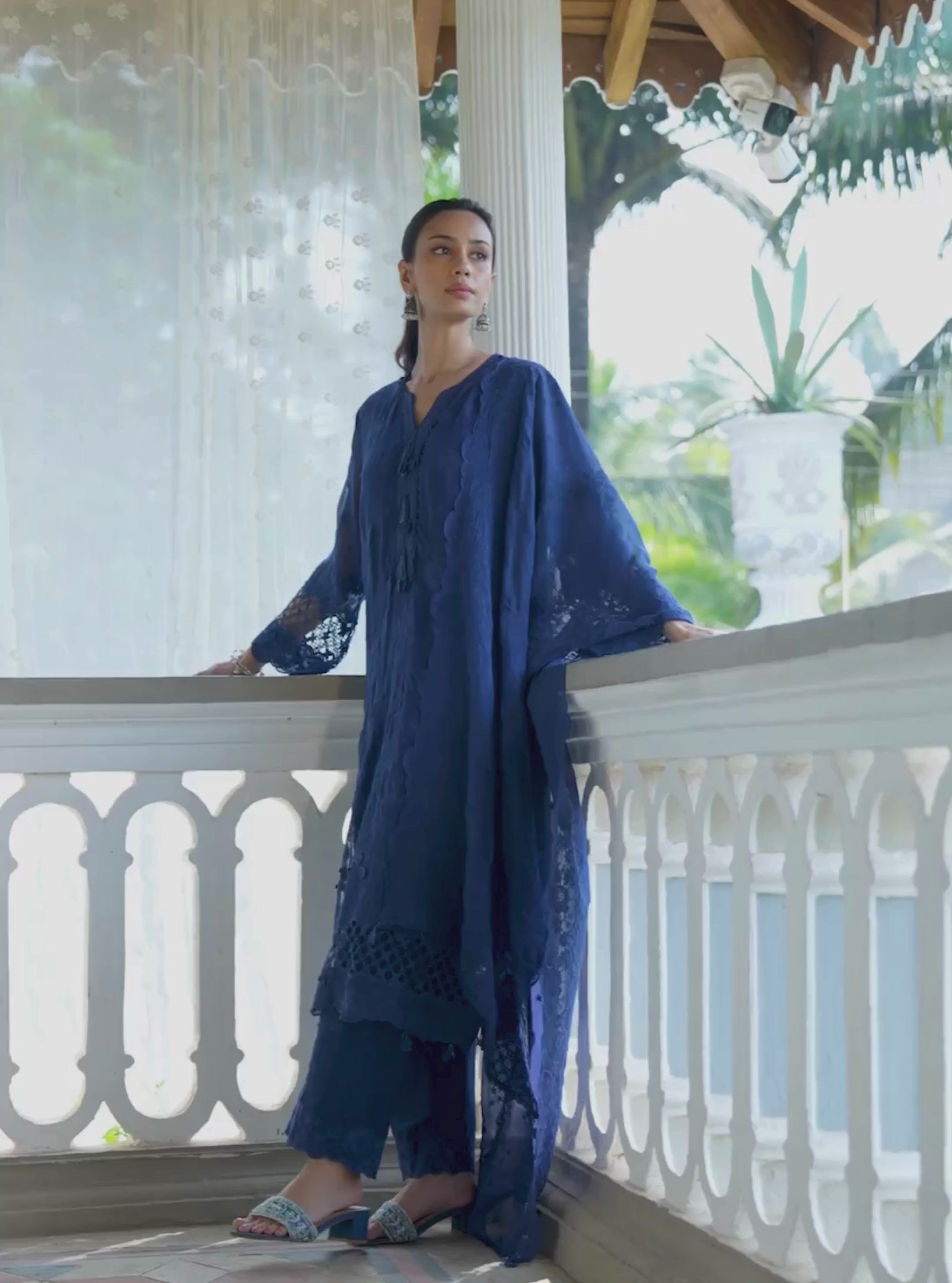 Leher Viscose Glass Organza Luxe Navy Kurta Set
