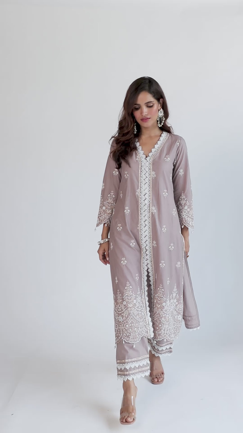 Mulmul Rosemallow Kurta With Front Pleated Pyjamas