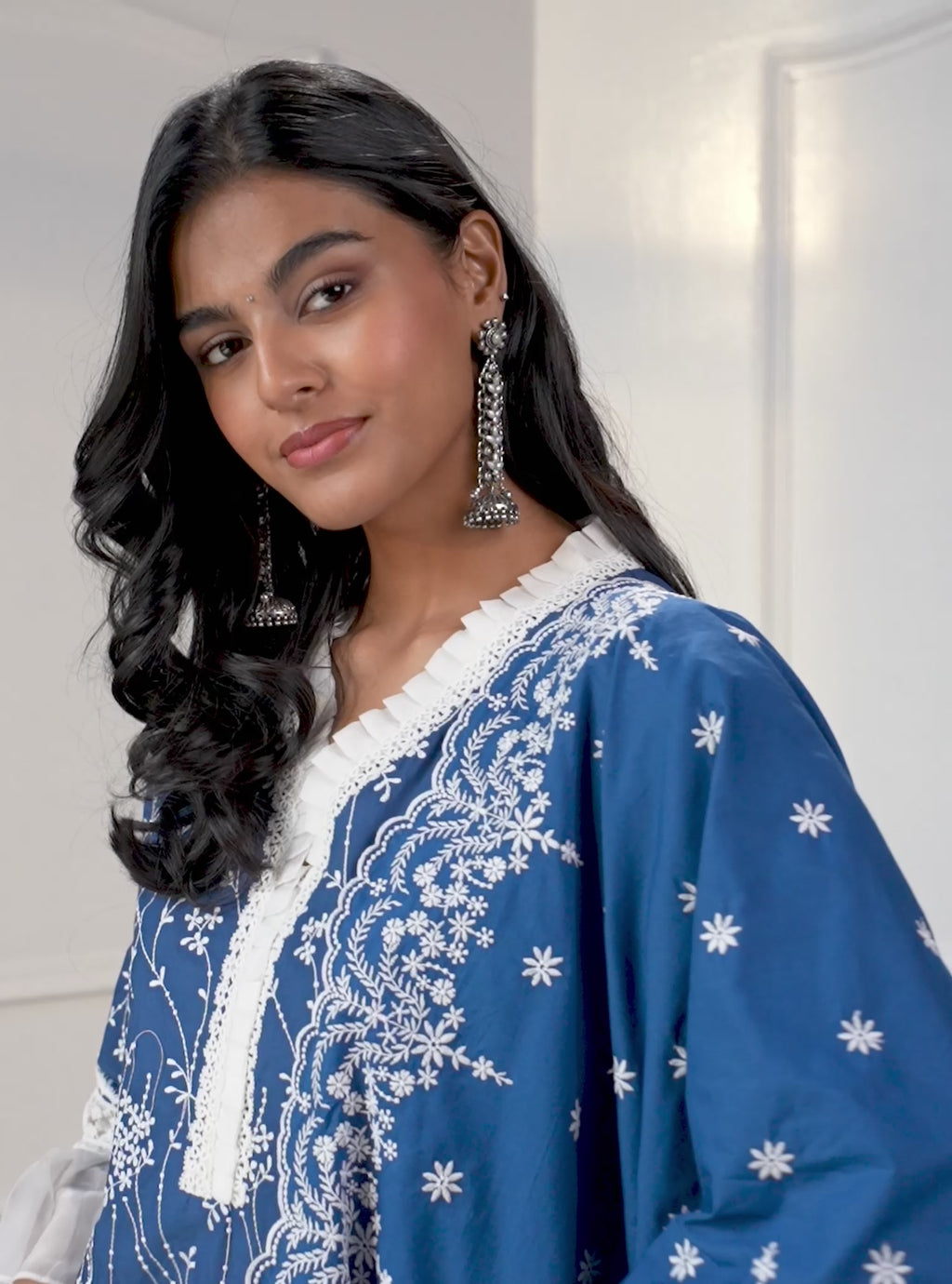 Mulmul Cotton Elora Blue Kurta With Elora Blue Bell Bottom Pant