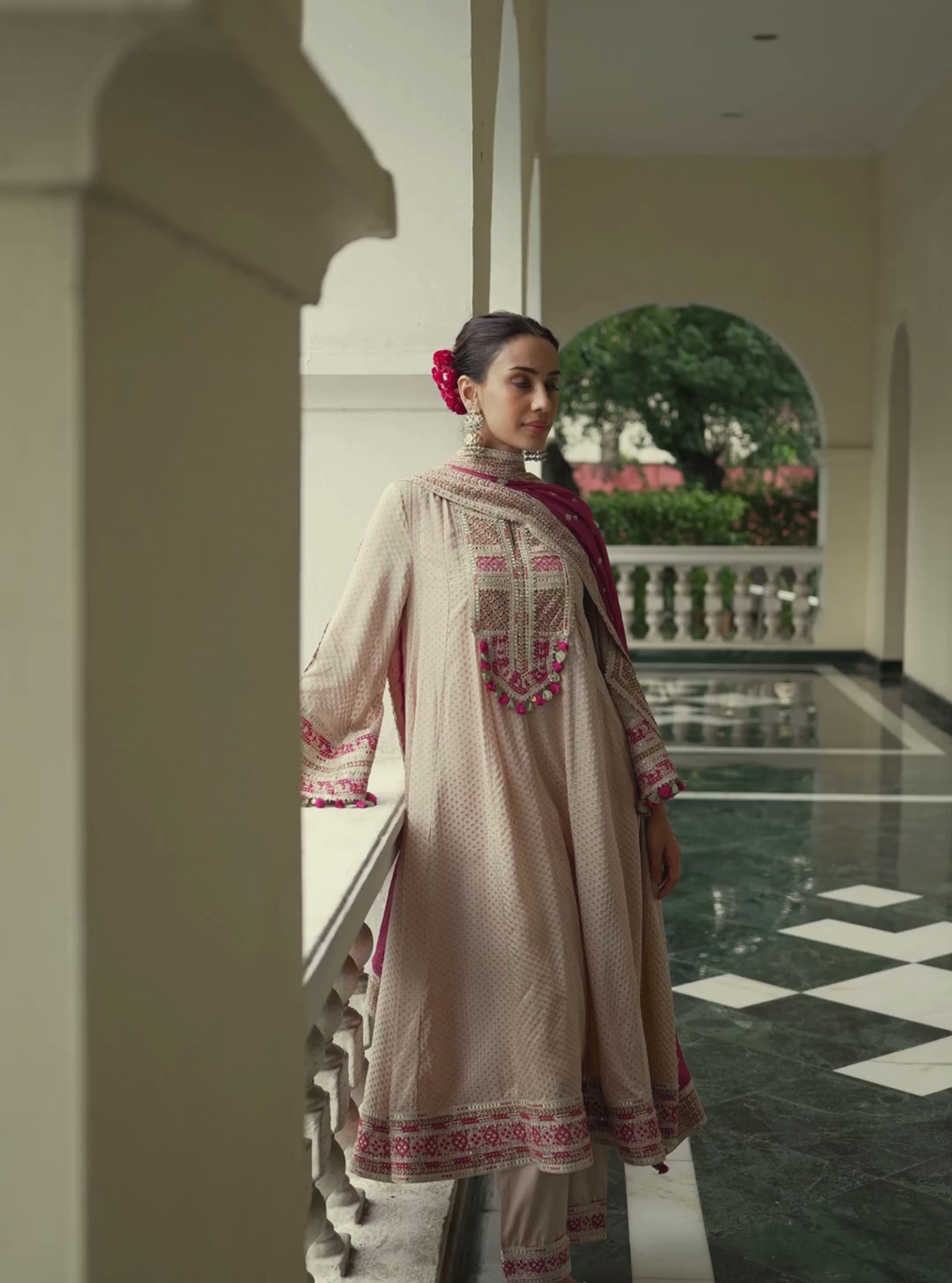 Dupatta:Mulmul Lurex Insert Aabharya Fuschia Dupatta .