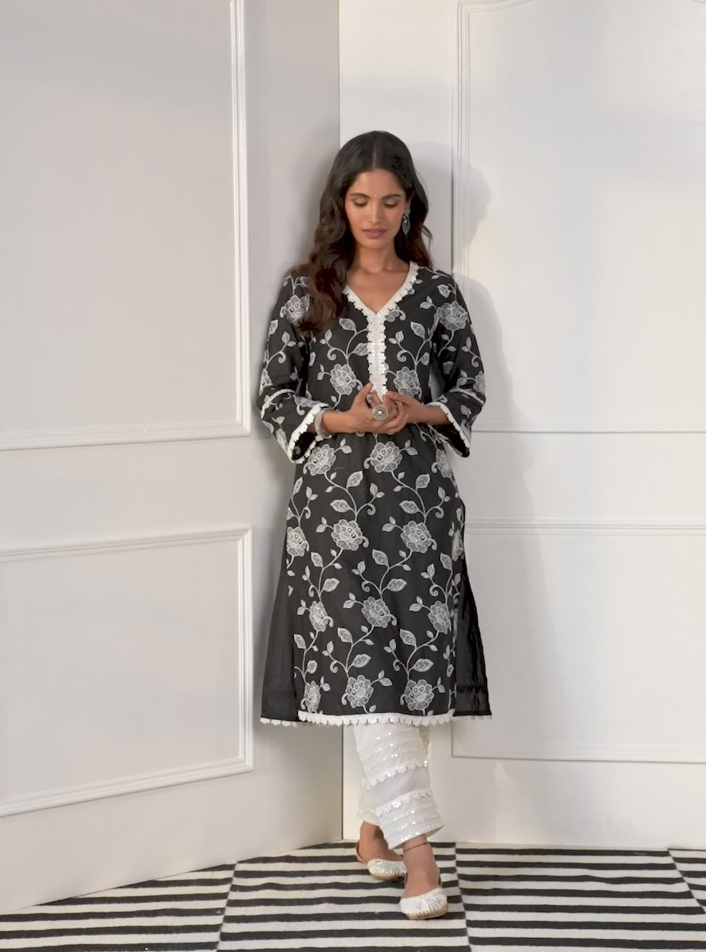 The Ezra Kurta Is A Unique Piece With Large Running Floral Work Through It?Ÿ?›?›Ƒ???ª?›Ƒ???›S Lengths. The Elegant Kurta Is Finished With Cotton Lace Trims On The Neck And Hems And Makes For The Perfect Outfit To Brunch, Lounge Or Even Wear In Between Your Bigger Events!