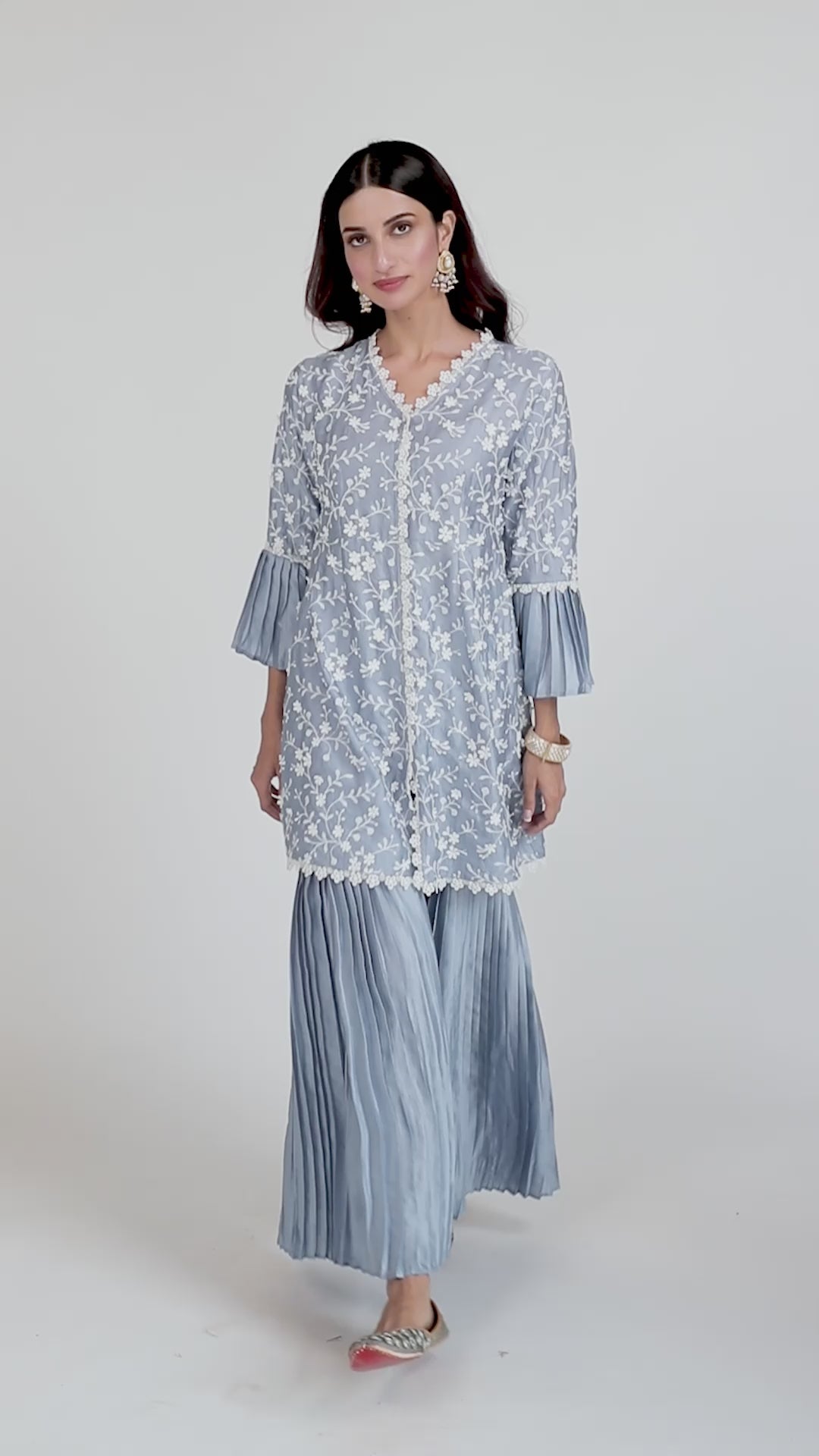 Mulmul Cupro Silk Cairo Blue Kurta With Cairo Blue Garara