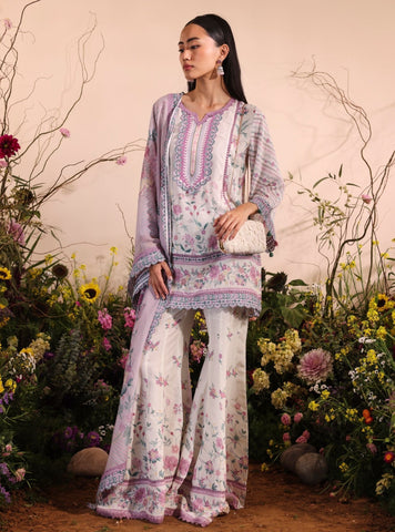 This printed kurta set is the perfect blend of effortless elegance and summer charm. Designed on a rich navy blue base, it features intricate floral prints in soft pink, lavender, and white tones—bringing a fresh burst of color that is both soothing and vibrant. The kurta is adorned with an ornate yoke and delicate lace detailing along the sleeves and hemline. The flowy silhouette and soft, breathable fabric make it an ideal choice for warm summer days, providing both comfort and style.