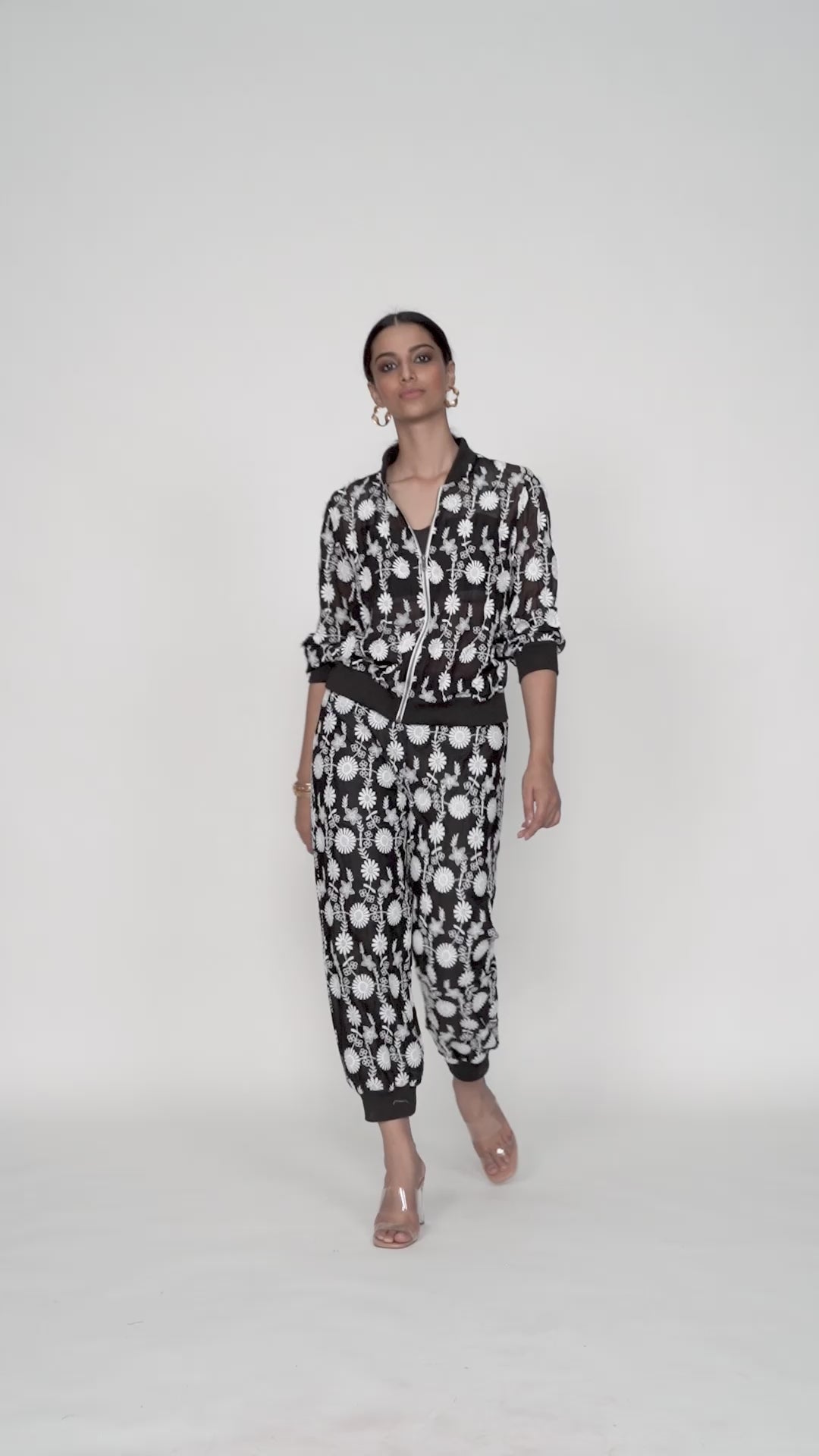 Co-ordinating Cupro silk tracks with fine floral needlework
