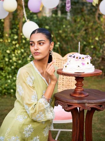The Lalo Kurta Set is crafted in sheer organza and designed in a relaxed straight silhouette. The kurta features delicate embroidery and refined borders, paired with comfortable satin pants that balance the lightness of the organza fabric. A coordinated organza dupatta completes the ensemble with an airy drape.