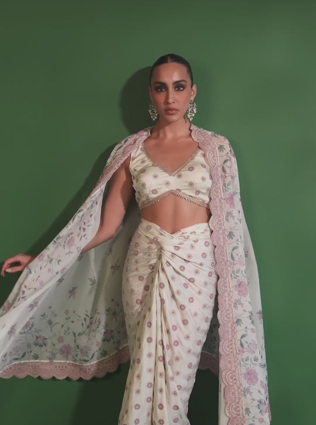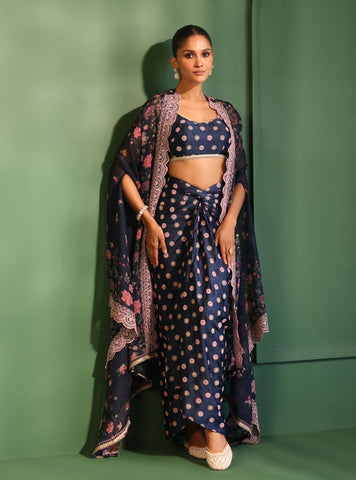 Laila Organza Printed Off White Cape Shrug With Skirt