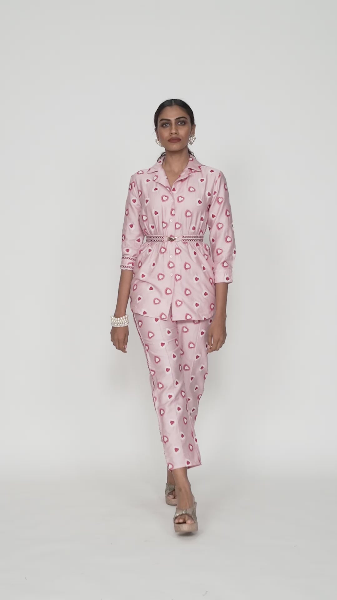 Mulmul Supima Cotton Caille Pink Top With Caille Pink Pant